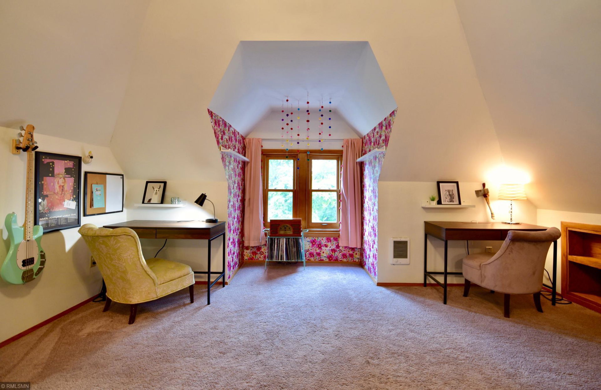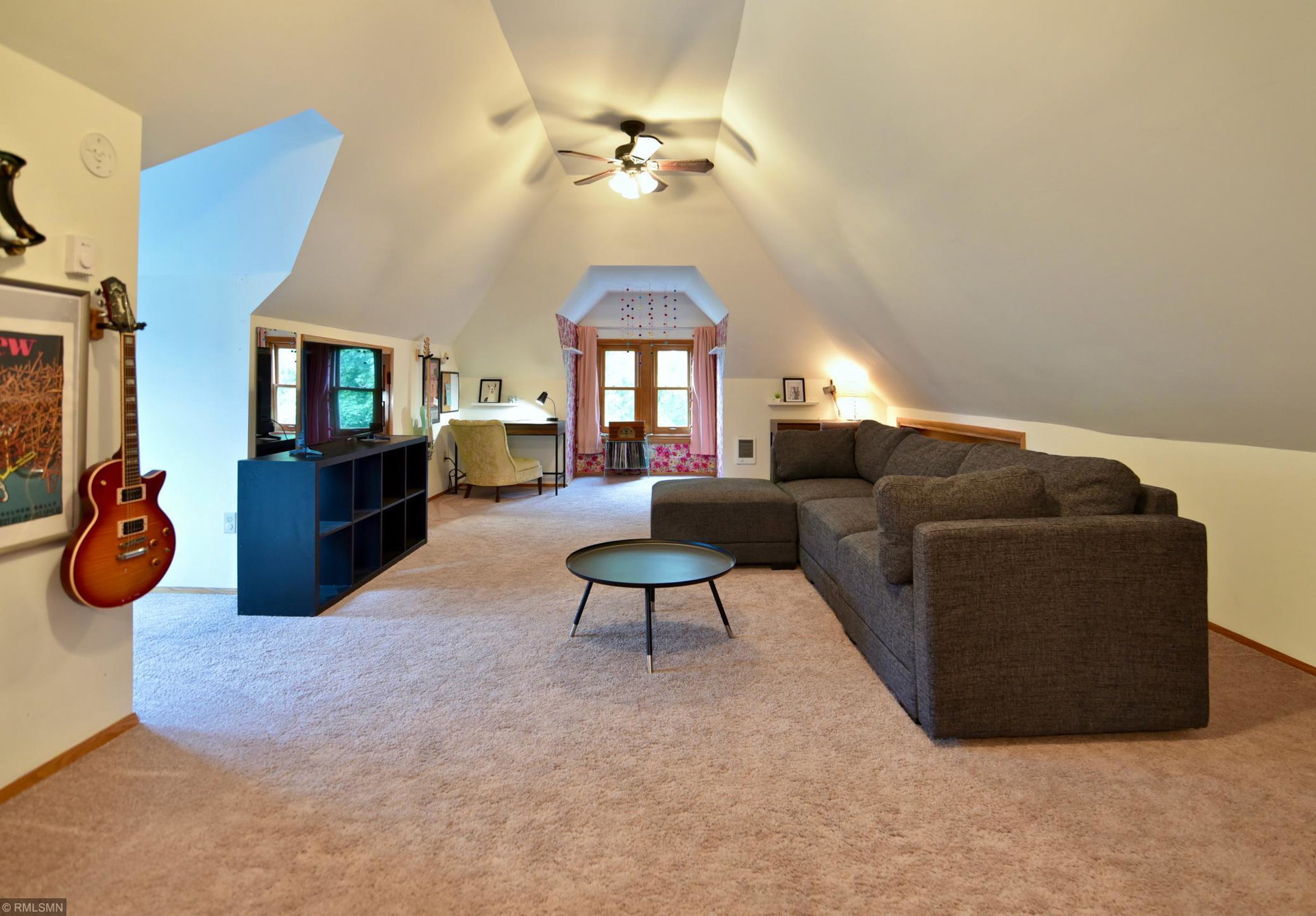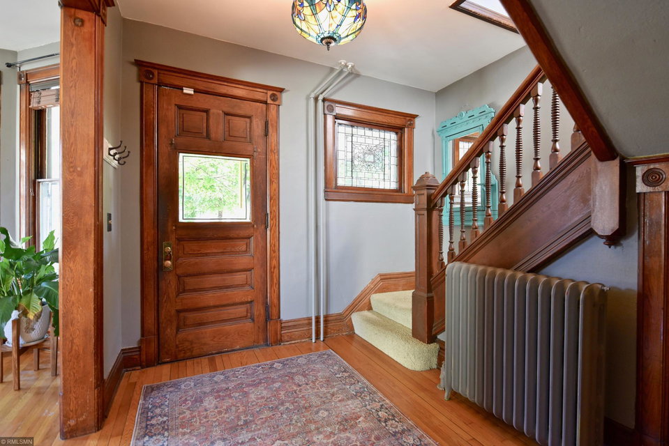 Classic St Paul 2 Story Home with large 3rd floor Family Room! This 4+ Bed 2 Bath home is a fine example of Old World Charm! Features include; Ornate Original Oak Millwork, Functional 8 Ft tall 7 Panel Pocket Doors! Handsome Built-ins, 9 Ft High Ceilings, Great Layout, Wood Burning Fireplace w/ Very Unique Decorative Cover, Warm HW Floors, 4 Bedrooms on Upper Level, Huge 3rd Floor Family Room, Friendly Front Porch, New 2 Car Garage, Brick Patio, Fenced Yard, Close to Shops, Parks… Come see this one!