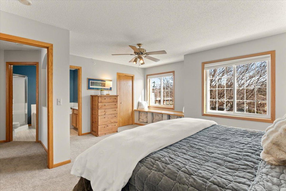 Upstairs, two bedrooms include a primary suite with generous closet space and direct access to a full bath, creating a private retreat. Step outside to a private patio for morning coffee or summer evenings, with an attached garage adding extra practicality.